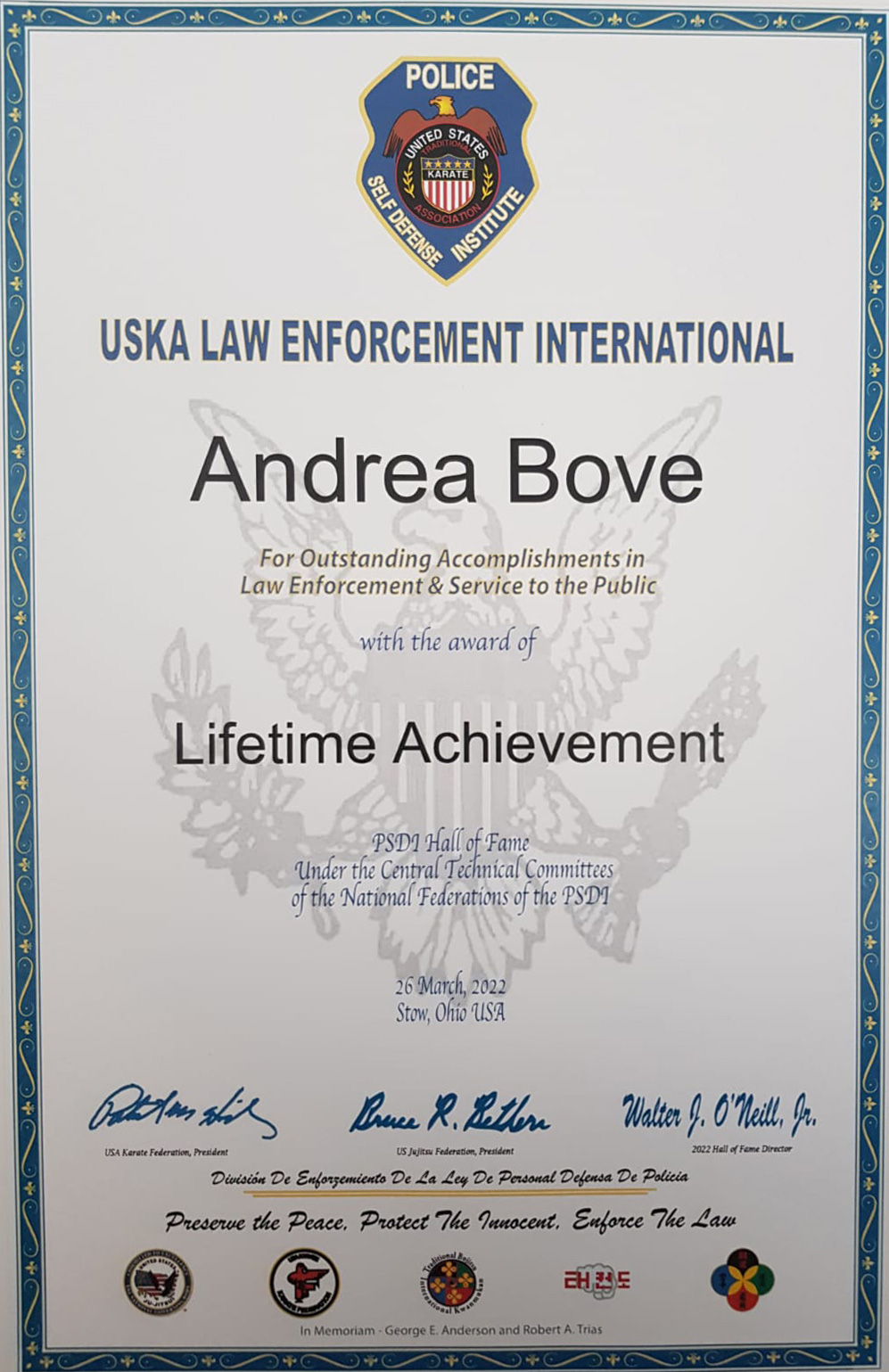 Police Self Defense Institute – Hall Of Fame,